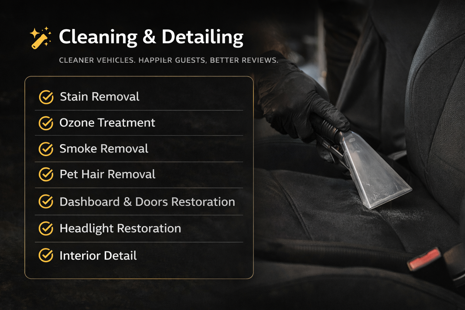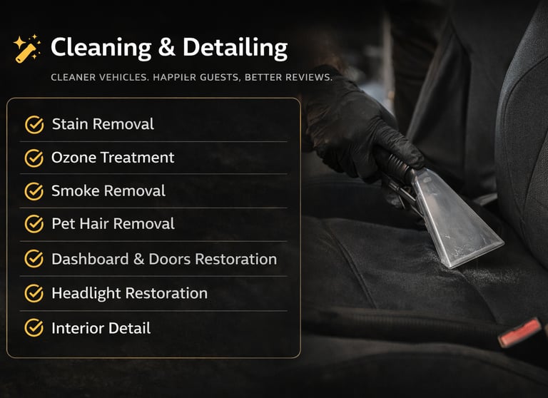 Fast turnaround designed for Turo hosts and local drivers.